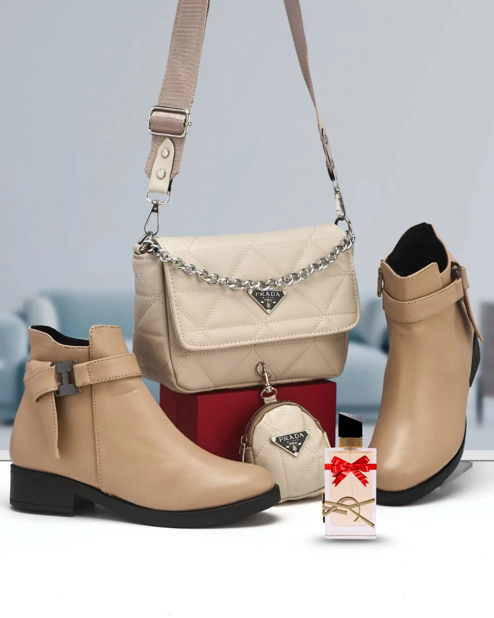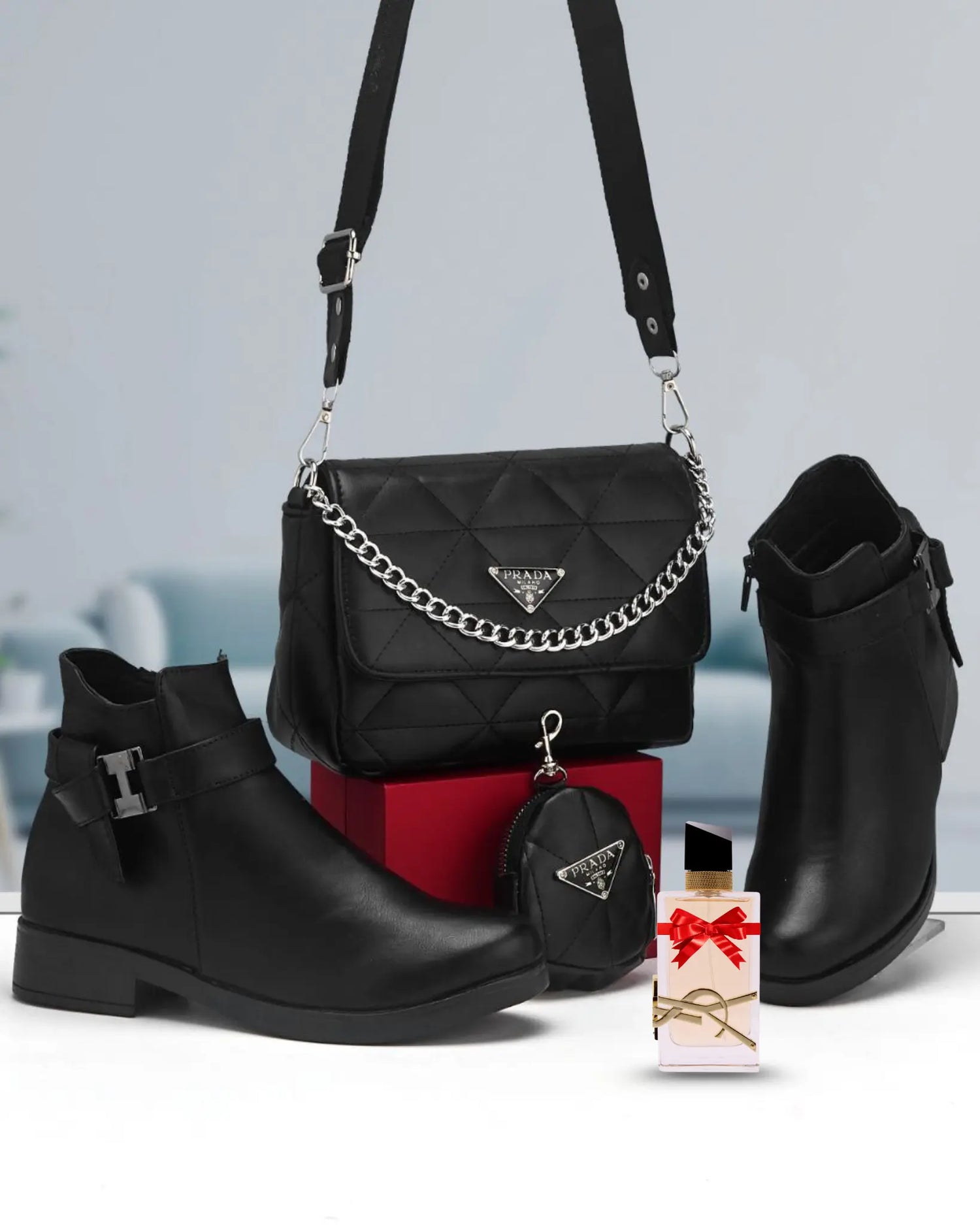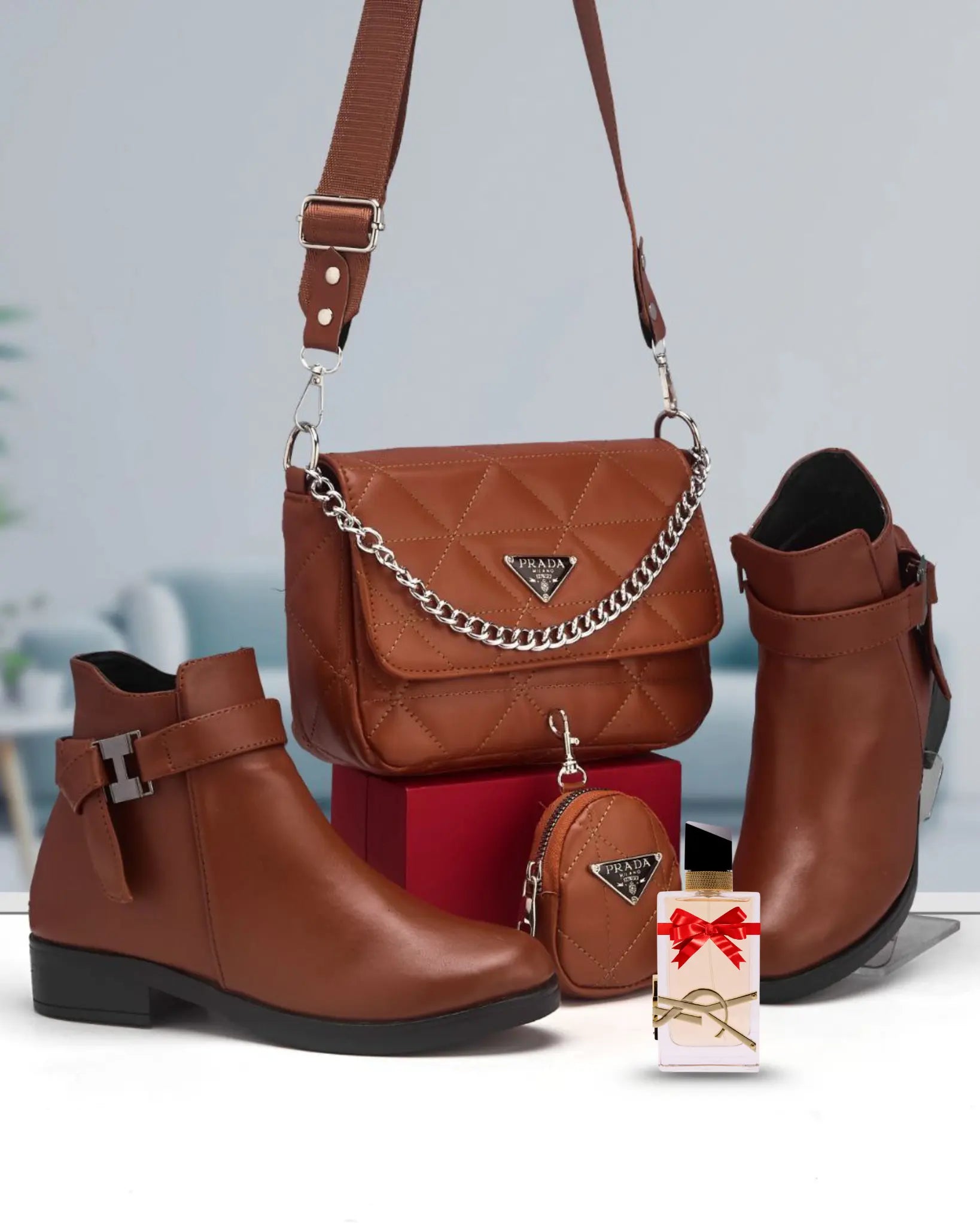 هاد الباقة كتجمع بين الأناقة والعملية، صباط وصاك بنفس اللون و الجلد كيمنحوك لوك متناسق بلا مجهود