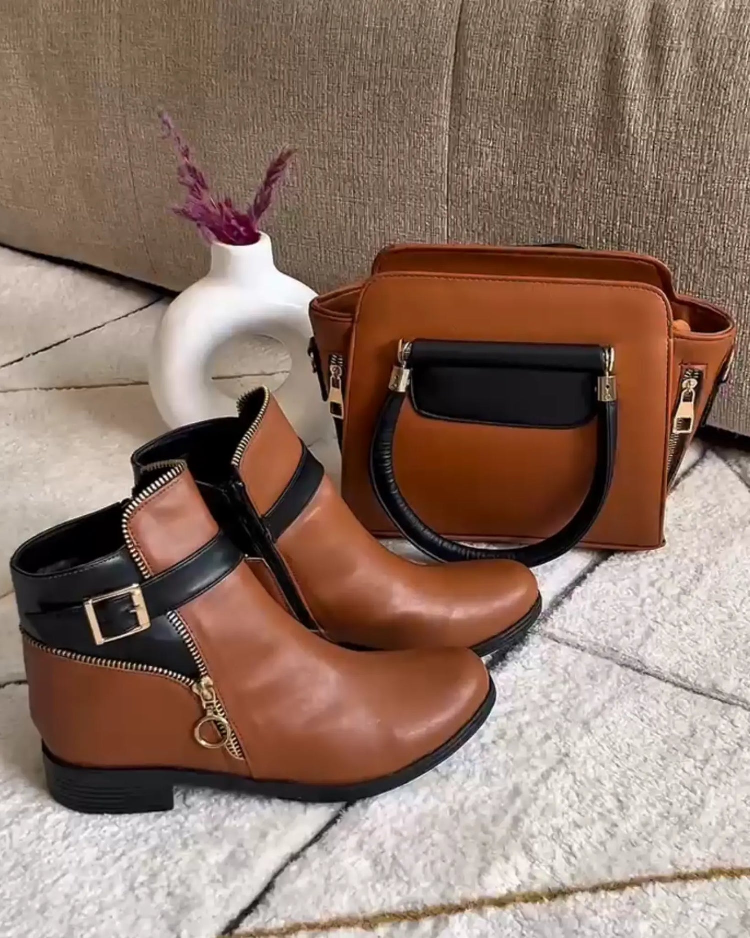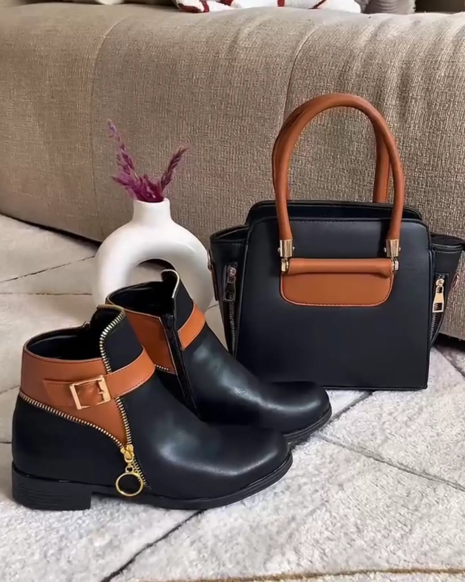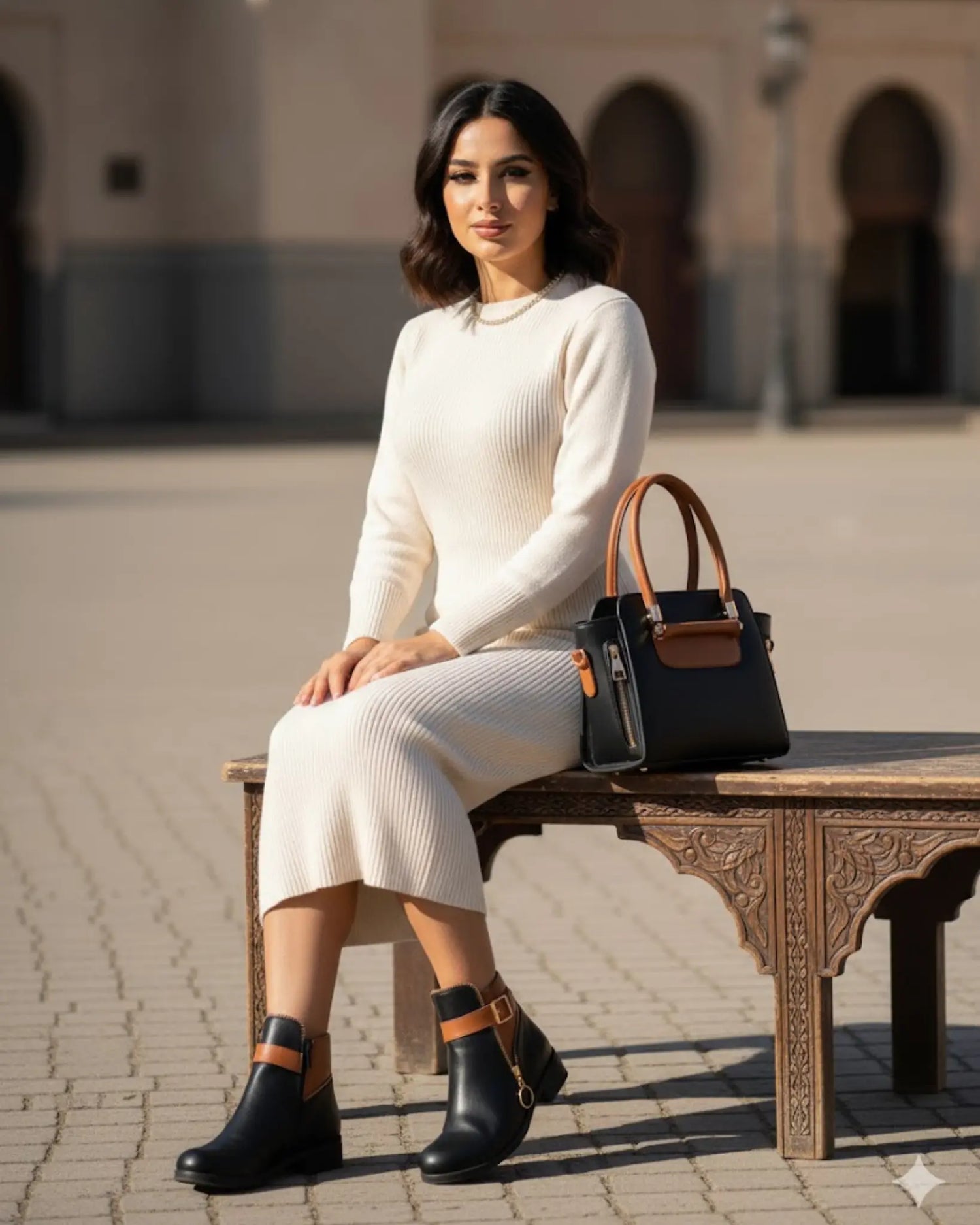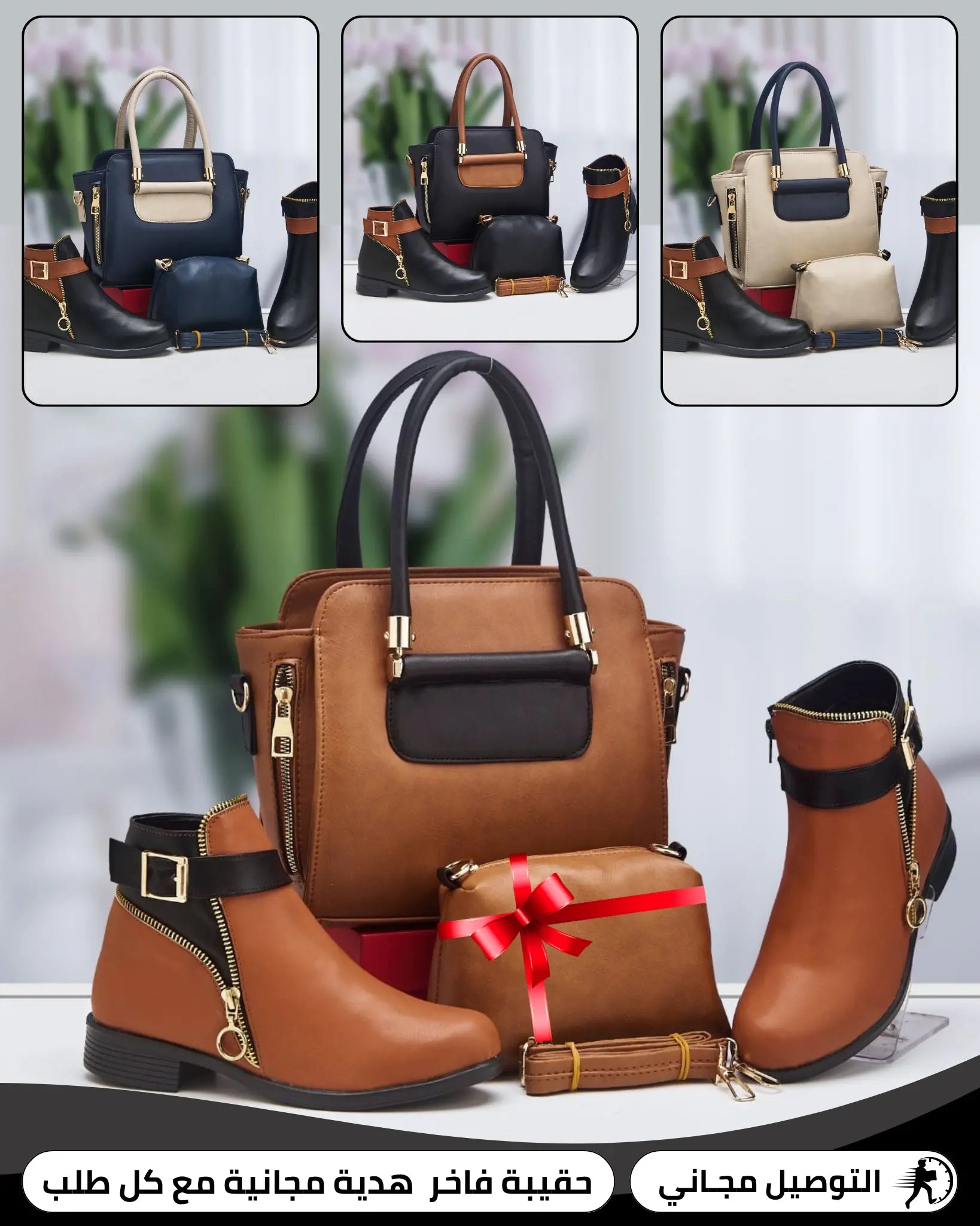 هاد الباقة كتجمع بين الأناقة والعملية، صباط وصاك بنفس اللون و الجلد كيمنحوك لوك متناسق بلا مجهود